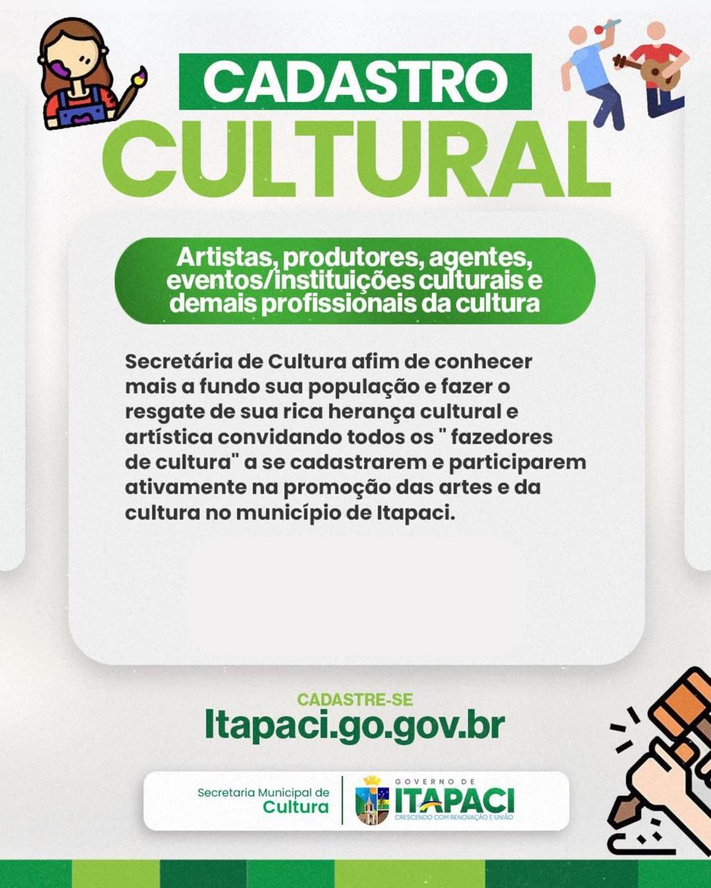Cadastro de artistas, técnicos e produtores culturais em Itapaci GO